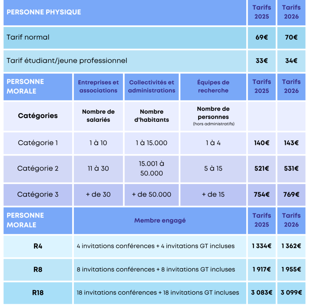 Pour mieux répondre aux besoins de ses adhérents, vous avez le choix entre une cotisation simple « membre adhérent » ou une cotisation « membre engagé » incluant des participations prépayées aux rencontres.