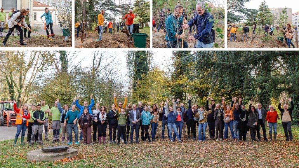 L’après-midi, les invités ont enfilé bottes et gants de jardinage pour planter 40 tiges d’arbres, arbustes et feuillus soigneusement sélectionnés pour constituer le « bosquet du Graie », accueilli par l’INSA Lyon, à deux pas de l’association. Une action symbolique pour marquer notre ancrage territorial et une action engagée au service de l’eau et la biodiversité.