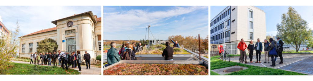 La matinée fut consacrée à la visite de l’éco-campus de la Doua avec un focus sur les installations de suivi de l’OTHU. L’occasion idéale pour découvrir les aménagements anciens et plus récents pour la bonne gestion des eaux pluviales et des sites expérimentaux instrumentés (noues, toitures végétalisées, chaussée à structure réservoir, etc.).